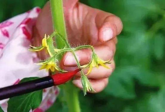 番茄點(diǎn)花是一個(gè)比較費(fèi)時(shí)的工作,同時(shí)還需要認(rèn)真細(xì)心,需要注意的是,點(diǎn)花的時(shí)候可以摘除每一穗花的第一朵花,因?yàn)檫@一朵花開(kāi)花比較早,點(diǎn)花后往往生長(zhǎng)更快,會(huì)吸收過(guò)多的養(yǎng)分,從而導(dǎo)致其他的番茄營(yíng)養(yǎng)不良;另外,點(diǎn)花一般在花瓣綻放到大喇叭口時(shí)期,花瓣顏色呈現(xiàn)鮮亮黃色時(shí)為最佳時(shí)期,僅涂抹穗軸與果柄的連接處即可。